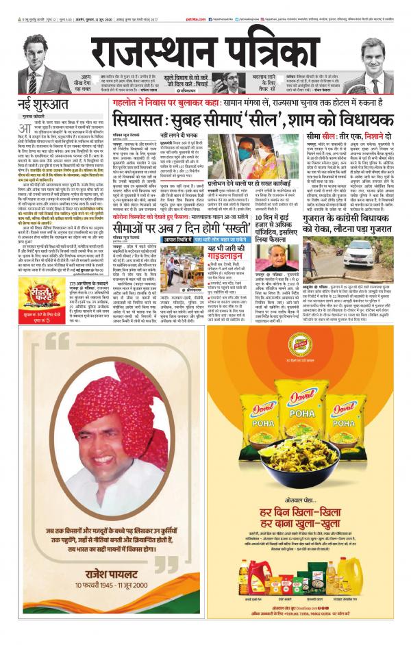 Kishangarh 01 01 70 Newspaper In Hindi By Rajasthan Patrika Private Limited Read On Mobile Tablets - Stf news 14 november taja khabar #14_november_2020 aaj ka taja khabar 14 november ki taja khabar aaj ki taja khabren 14.