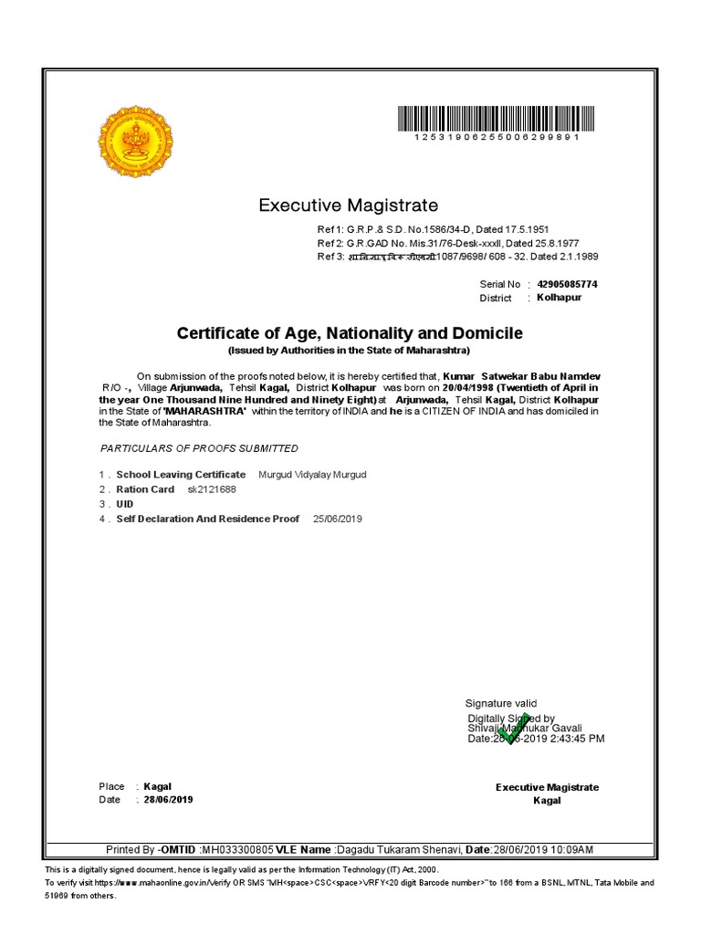 Domicile Certificate Maharashtra Images : Do you have domicile certificate (self/parents)? Domicile Certificate Maharashtra Images : Residence certificate is also known by domicile certificate.