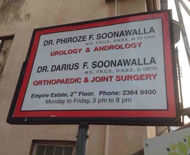 Dr Phiroze F Soonawalla - Soonawala orthopaedic & urology clinic, 2nd floor, empire estate, august kranti marg, kemps corner, mumbai.